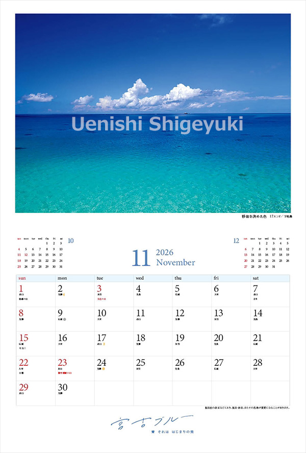 2026年版「宮古ブルー」 カレンダー